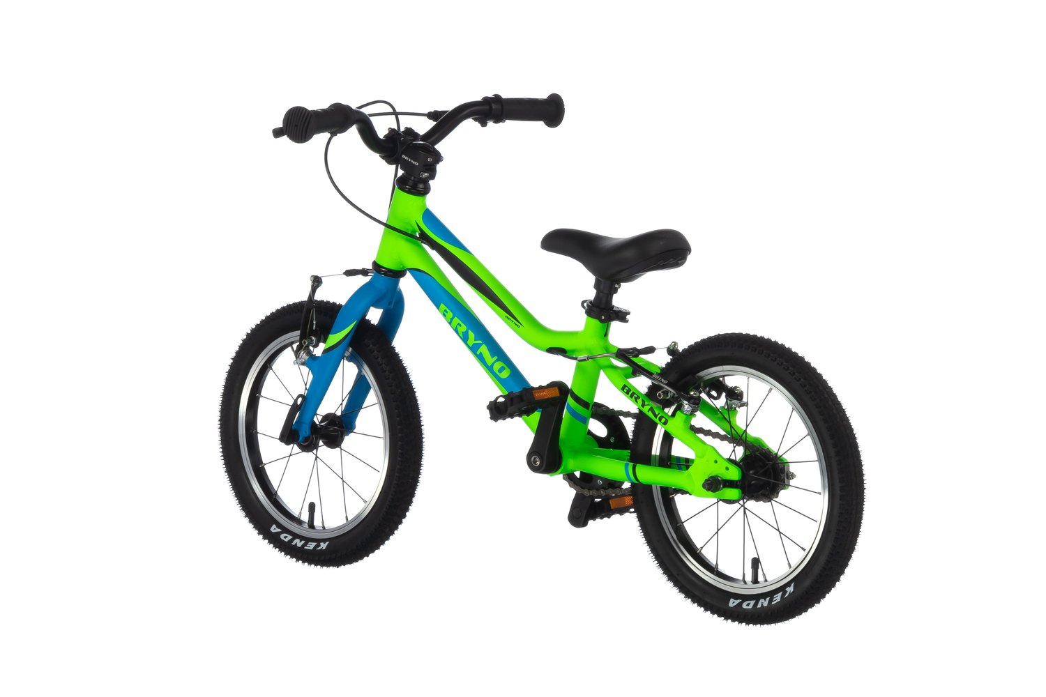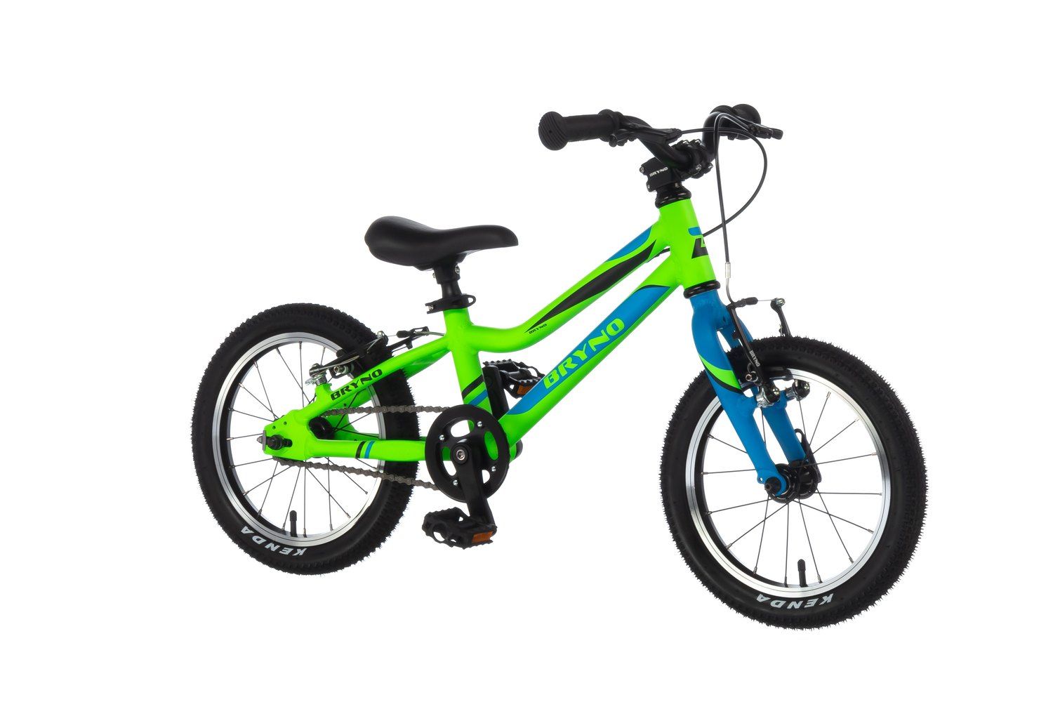 Bryno-14 Sport — суперлёгкий, прочный и безопасный детский велосипед для езды по пересечённой местности. Оснащён 14-дюймовыми колёсами, алюминиевой рамой и низким рулём.